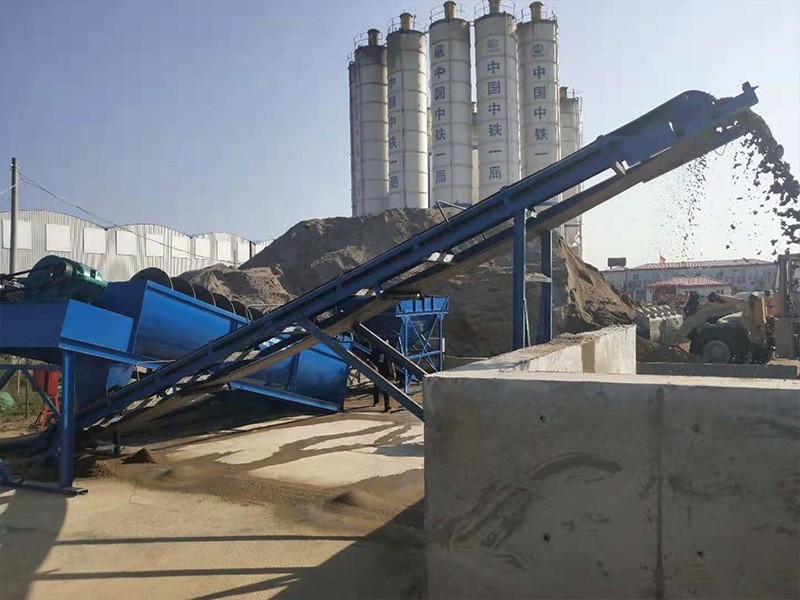 中鐵一局銀西鐵路螺旋式洗砂機工作現場