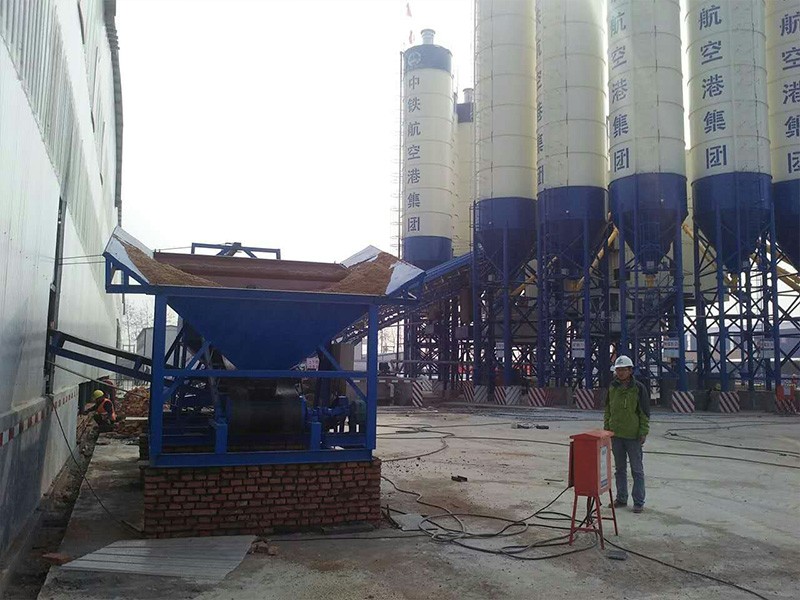整個設備由原料儲料斗、原料供料皮帶機、平置篩網、成品砂堆料皮帶、棄石出料槽等組成,設備通電運轉后由裝載機將原料裝入大容量儲料斗,原料經由供料皮帶投入到平置篩筒,旋轉的篩筒帶動原料在筒內葉片的推擠、翻滾下形成原料在篩網面滑滾的人工篩砂效果,篩出的成品砂通過集料斗落在成品砂皮帶上,同時被皮帶提升落下呈成品料堆、或直接落入儲料斗,整個過程連續且物料分級清楚。
