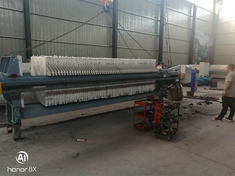 液壓壓緊板框式壓濾機由主機(機架和濾室)、液壓部件和電氣等部分組成。